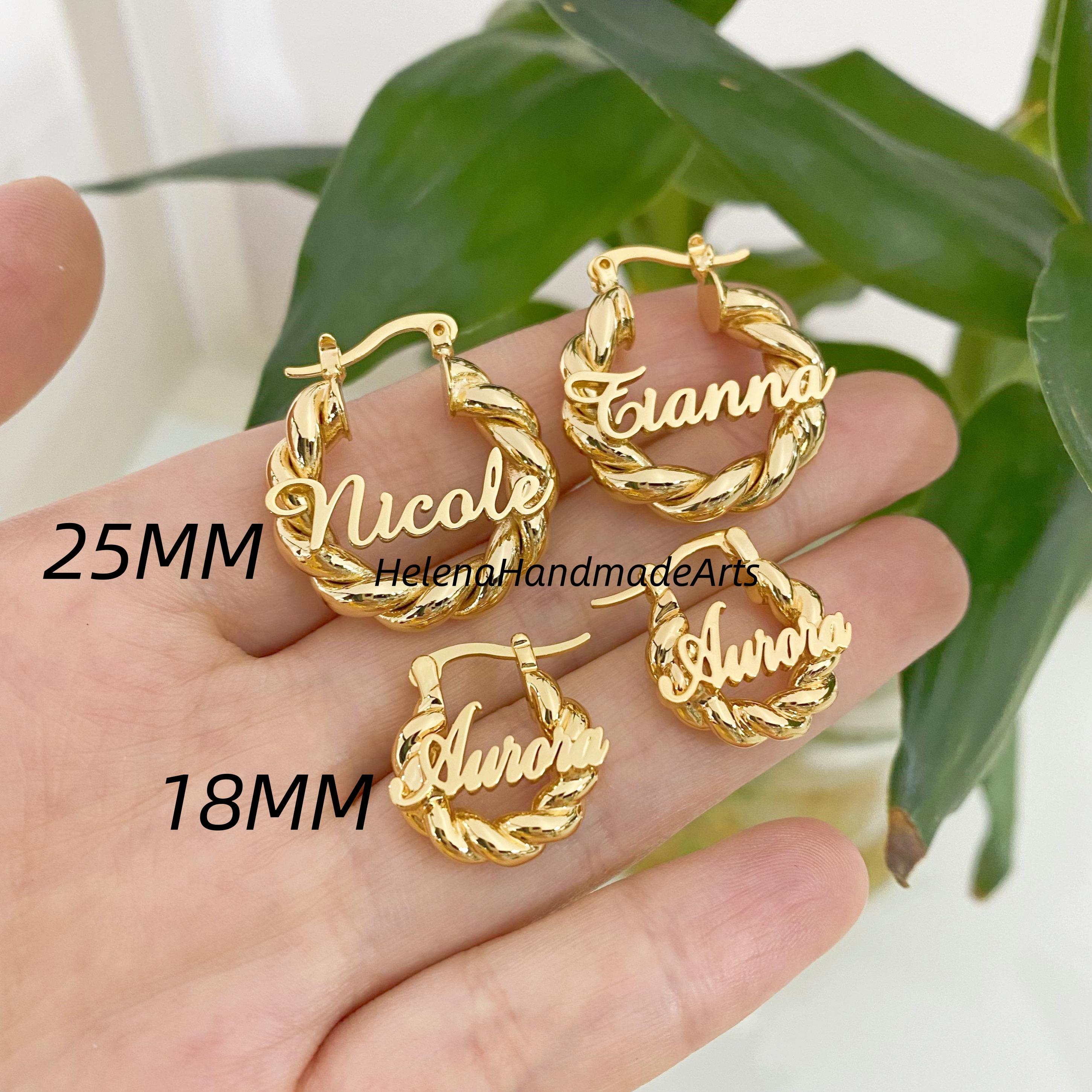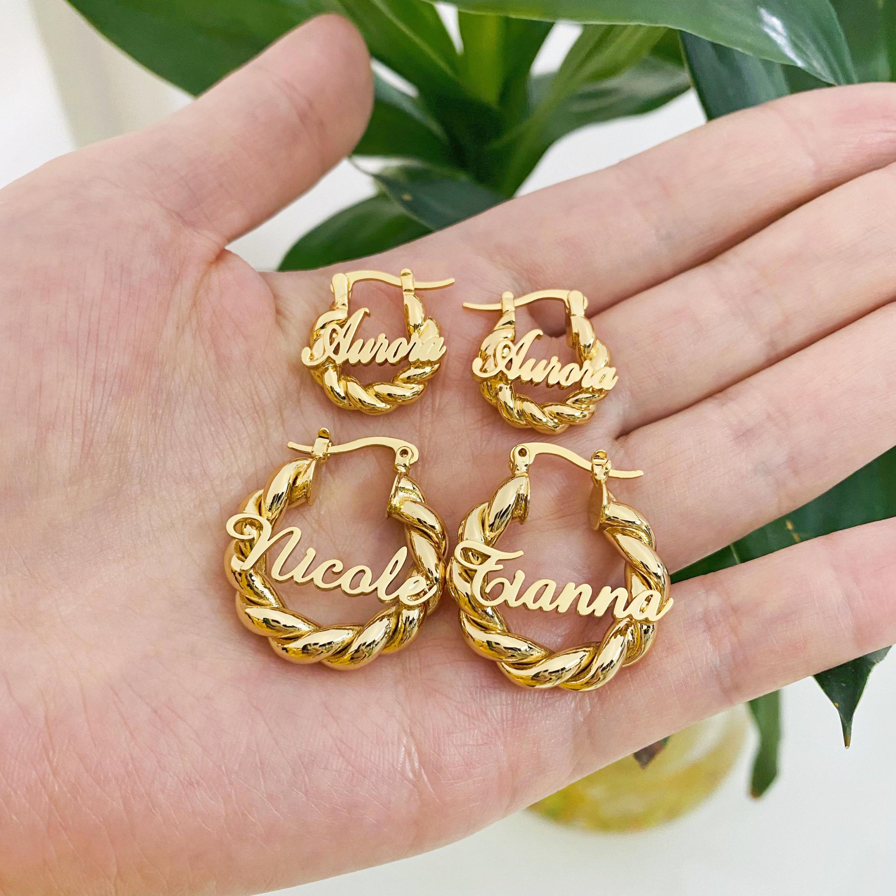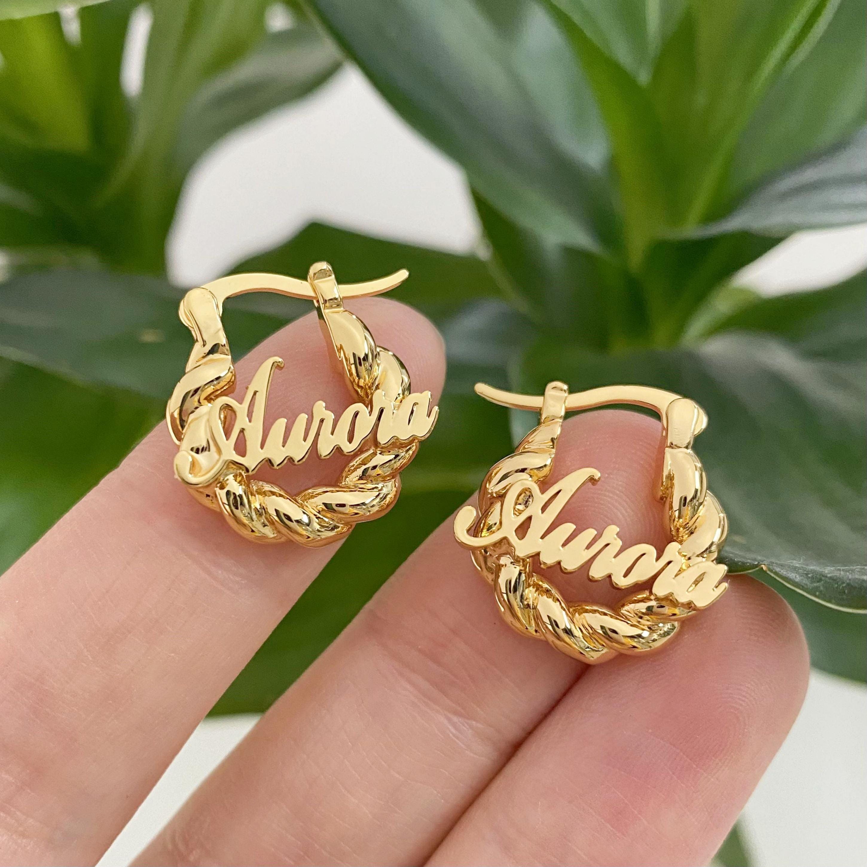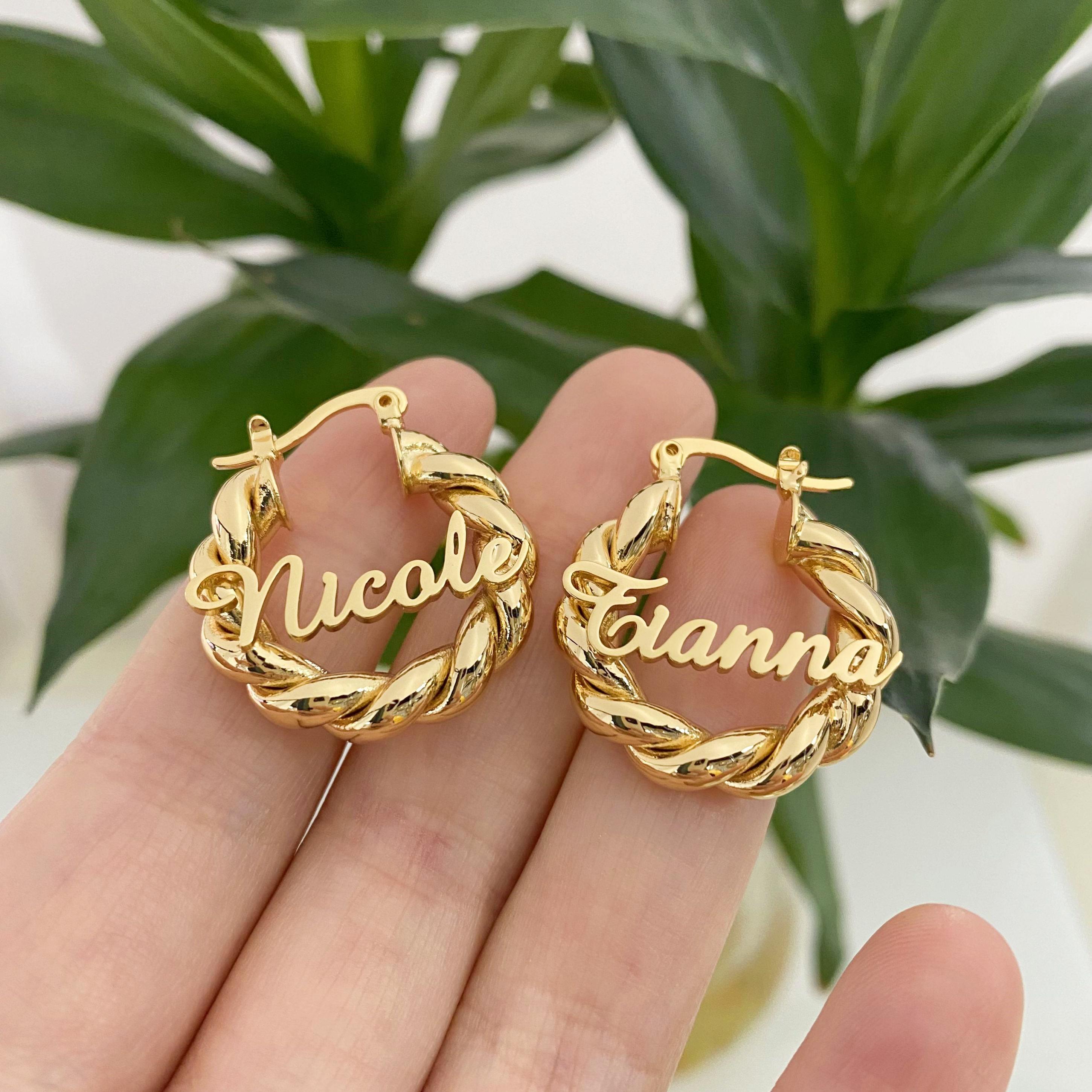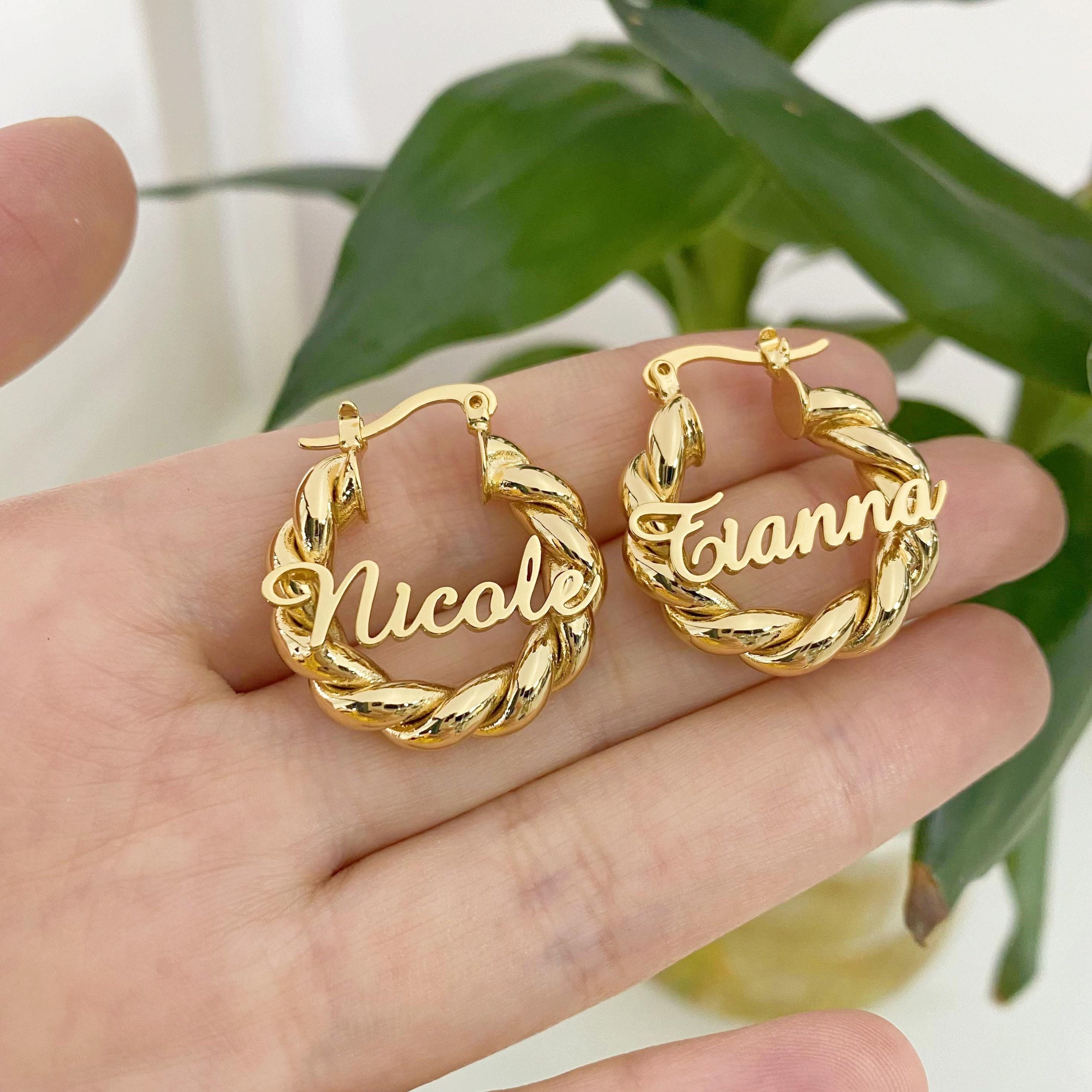 Custom Name Hoop Earrings, Personalized Mini Twist Hoops, Kids Jewelry Gift